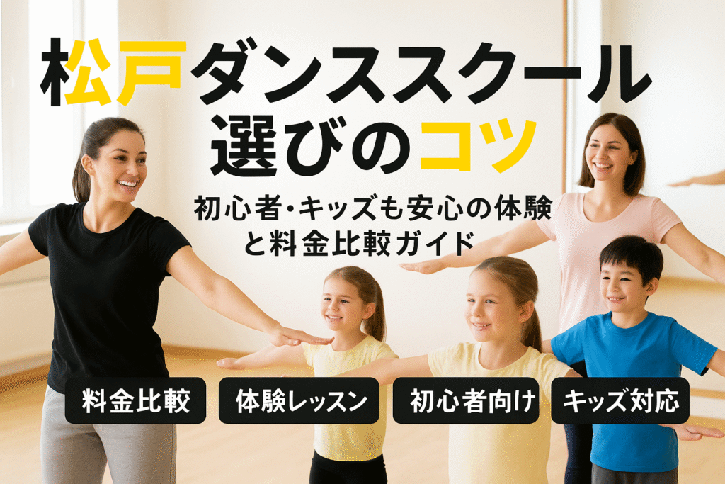 「松戸ダンススクール」を探す時は、年齢や目的で重視点が変わります。初心者は通いやすさとサポート体制、キッズは安全性と成長段階に合う指導、大人は続けやすい料金と時間帯が鍵です。松戸市内は松戸駅や新松戸、東松戸、五香、馬橋など生活動線に教室が点在し、仕事帰りや放課後に通いやすい環境が整っています。K-POPダンスを学びたいならK-POPダンススクール松戸や「松戸ダンススクール大人」向けの夜クラスなど、ジャンル特化の選択肢もあります。キッズはテラスモール松戸のような施設内の教室や、イオンカルチャークラブ、セイハダンスアカデミーのように見学制度が明確な場が安心です。高校生や中学生は部活・受験と両立できる振替制度の有無が決め手になりやすいです。大人初心者は身体づくりを目的にジャズやヒップホップ基礎、K-POPダンススクール初心者クラスを選ぶと継続しやすく、シニアは負担の少ない強度設定を確認しましょう。松戸駅前ワタナベダンススクールのように駅近で悪天候時も通いやすい立地は日常化の強い味方です。